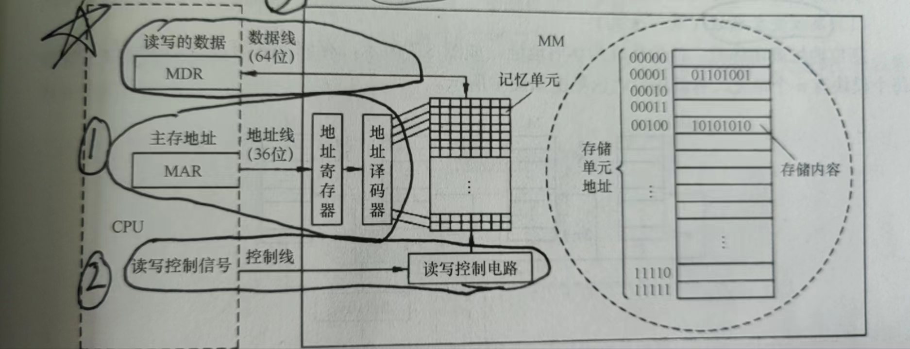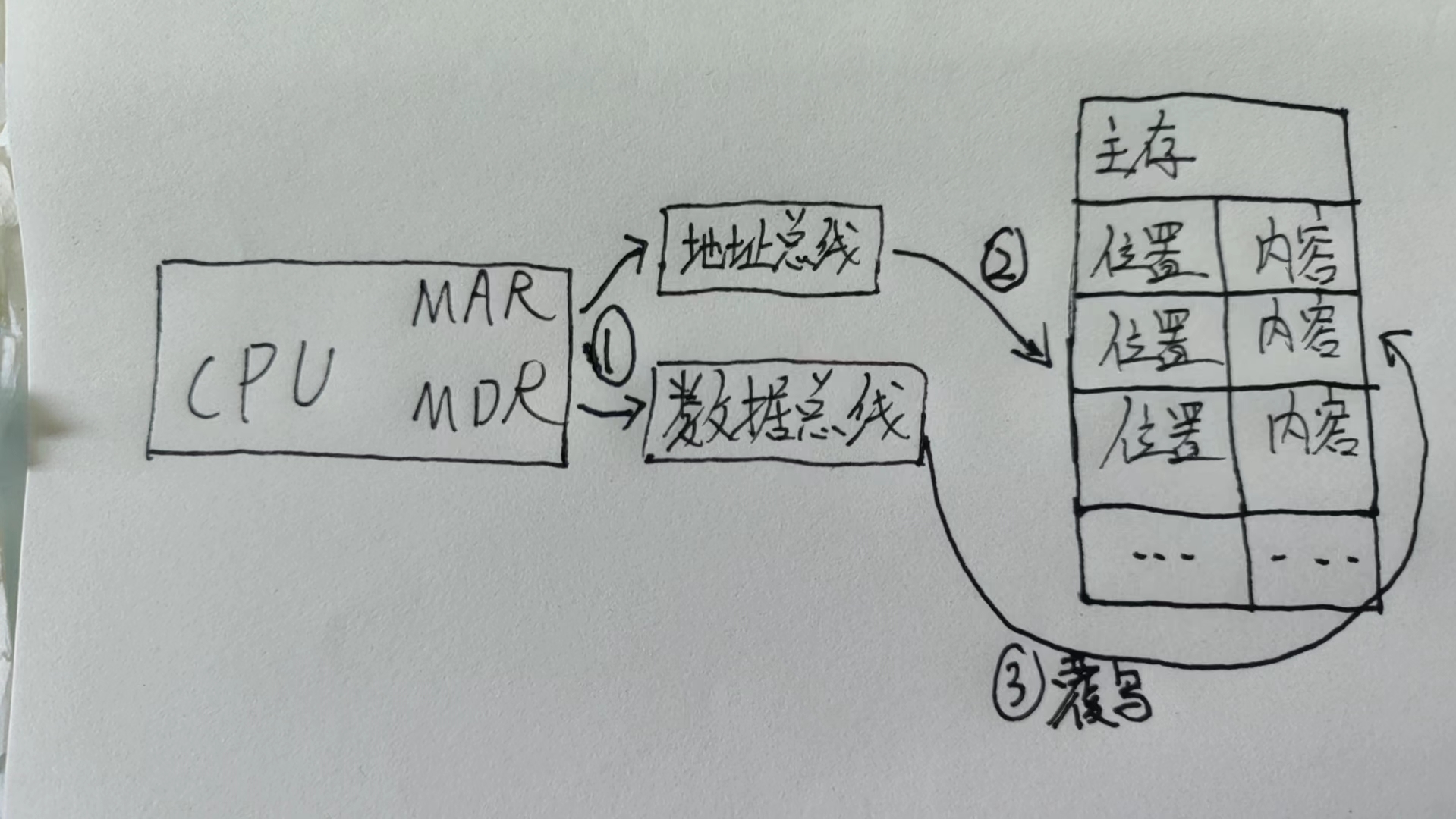 写操作:CPU首先获取要写入的数据的地址以及修改的内容,并将这些信息分别存入自己的MAR和MDR中。然后,通过地址总线将MAR中存储的地址传送到主存储器中,主存储器根据这个地址找到对应的存储单元。接着,CPU通过数据总线将MDR中的修改内容传送到主存储器中,覆盖原先的数据。