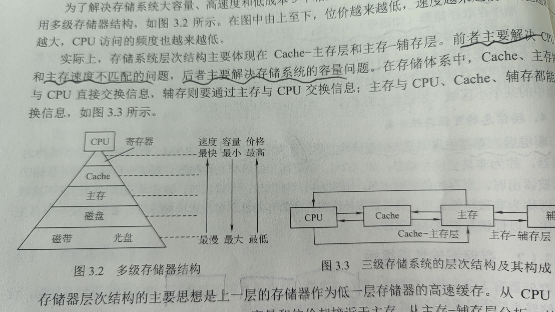 在Cache-主存层和主存-辅存层中,上一层中的内容都只是下一层中的内容的副本,也即Cache(或主存)中的内容只是主存(或辅存)中的内容的一部分。