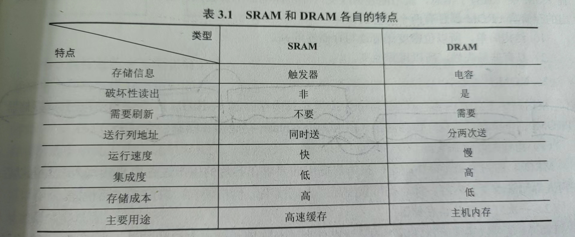 速度快、集成度低、功耗大、价格昂贵,用作高速缓冲存储器Cache。