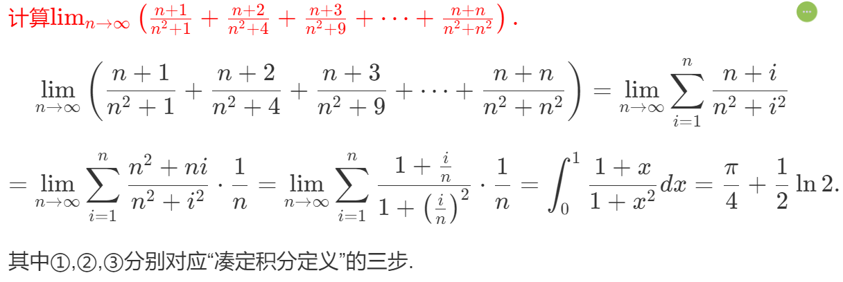 ③ 由于 $\frac{i}{n}=0+\frac{1-0}{n}i$,故 $\frac{i}{n}$ 可以读作“0到1上的 (x)”,且 $\frac{1}{n}=\frac{1-0}{n}$,读作“0到1上的 $\mathrm{d}x$”