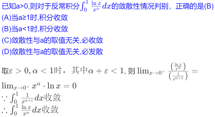 若上述右边两个反常积分都收敛,则称反常积分 $\int_{a}^{b} f(x) , dx$ 收敛,否则称为发散。