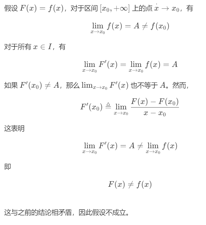 (2)含有第一类间断点和无穷间断点的函数f(x)在包含该间断点的区间内必没有原函数F(x)。