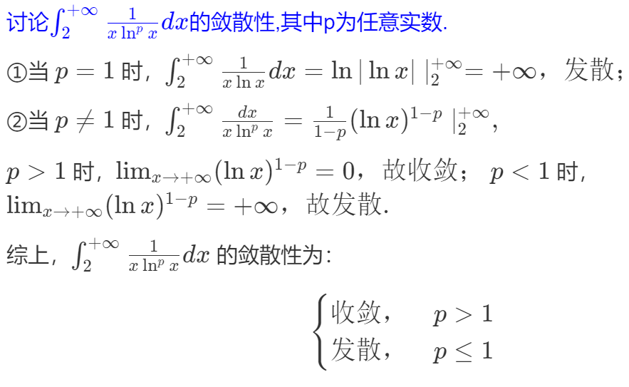也就是说,要判断该类反常积分是否收敛,必须证明$\int_{-\infty}^{c} f(x)dx$与$\int_{c}^{+\infty} f(x)dx$同时收敛。