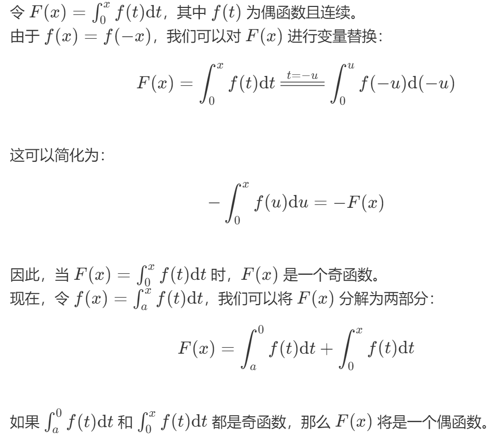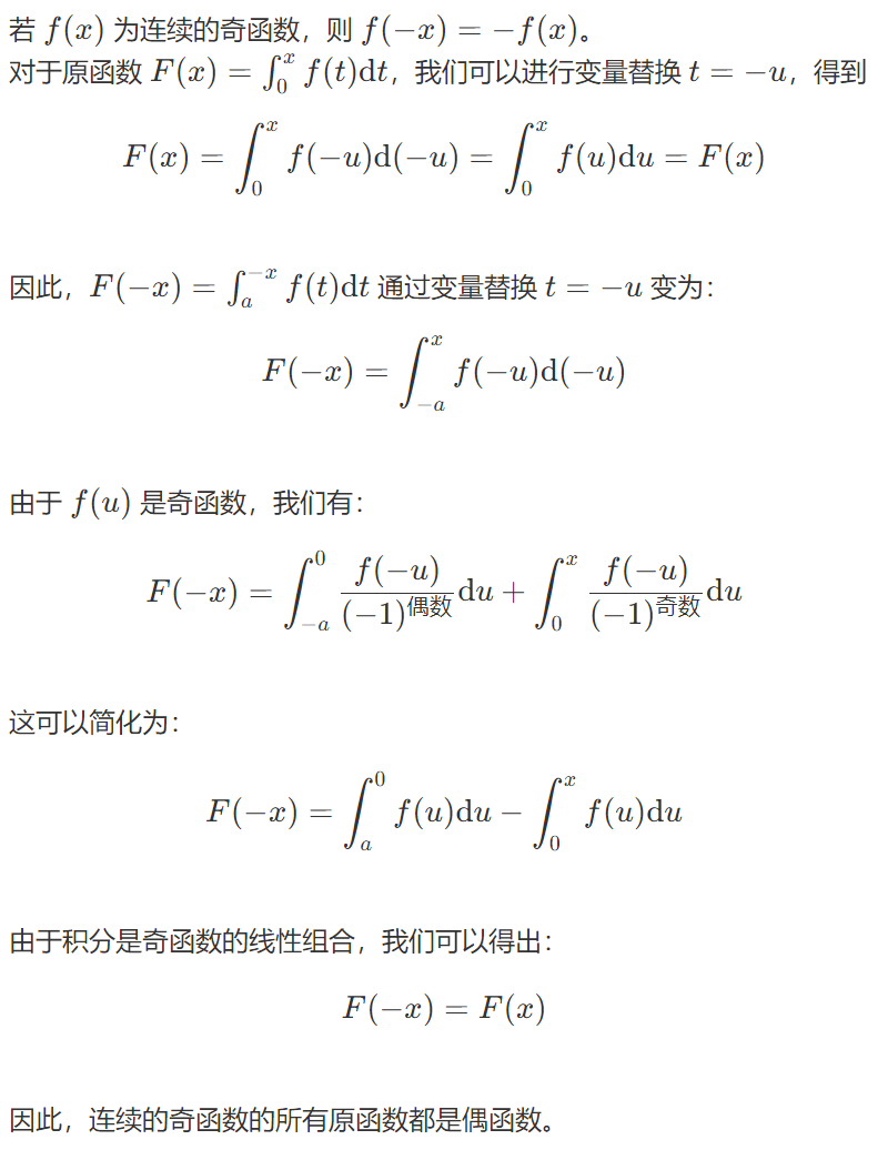 (2)连续的偶函数的原函数有且仅有一个原函数是奇函数。