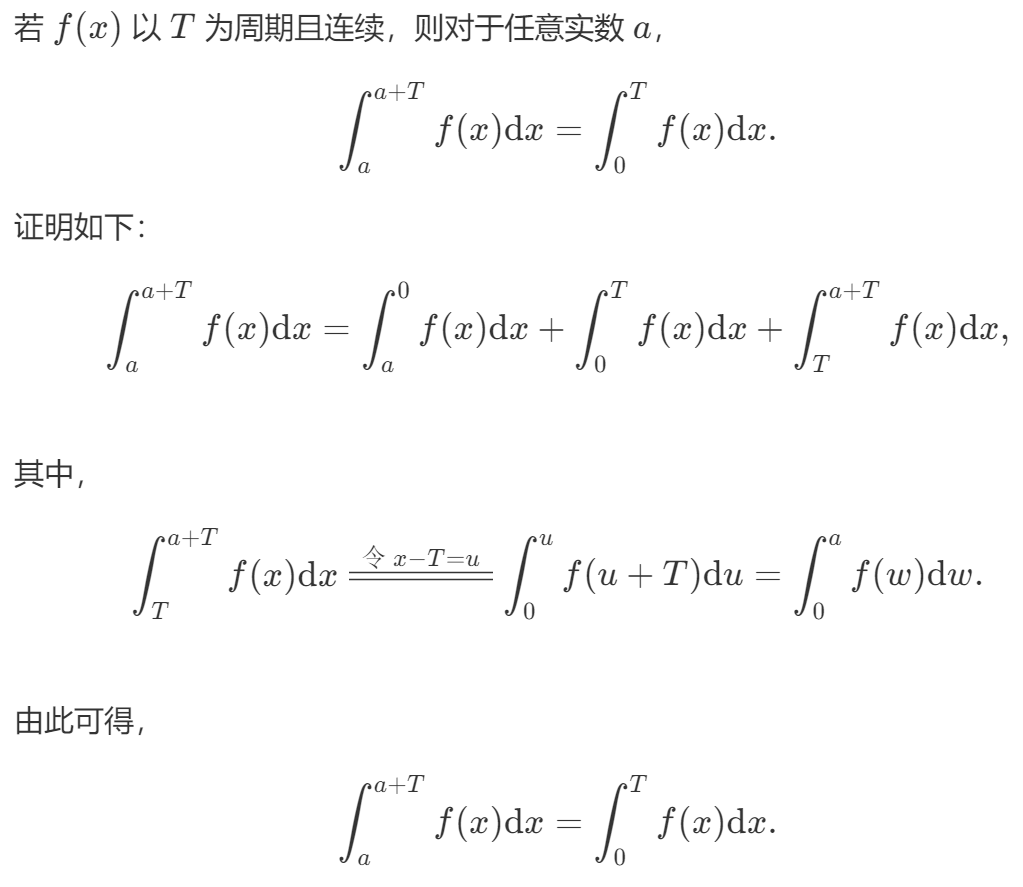 (3)以T为周期的连续函数f(x),它在一个周期上的积分值与起点无关