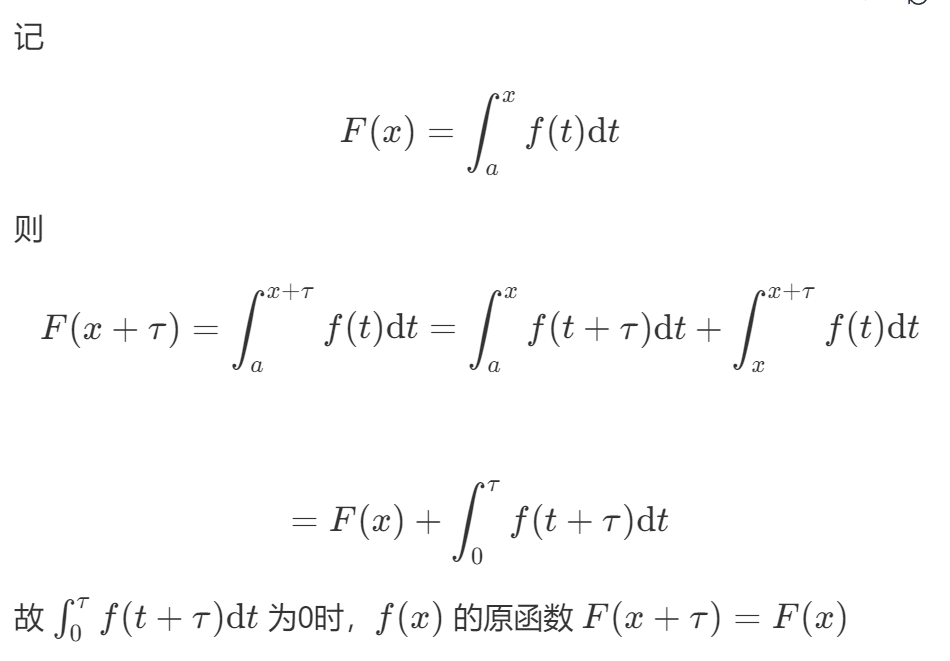 (4)以T为周期的连续函数f(x)的原函数以T为周期的充要条件