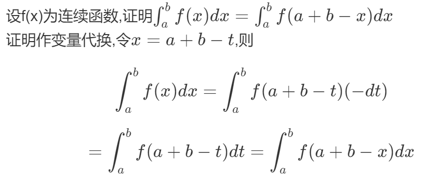 【注】我们称上面公式中的x为“求导变量“,t为“积分变量”,“求导变量”x只出现在积分的上、下限时才能使用变限积分求导公式,若“求导变量”x出现在被积函数中,必须通过恒等变形(比如变量代换等)将其移出被积函数,才能使用变限积分求导公式。