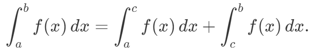 ③性质3(积分的可加(拆)性):无论a,b,c的大小如何,总有$\int{a}^{c}f(x)\mathrm{d}x=\int_{a}^{b}f(x)\mathrm{d}x+\int_{b}^{c}f(x)\mathrm{d}x.$